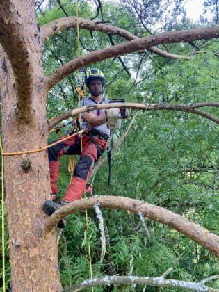 « L’élagueur est harnaché avec une corde de rappel pour se déplacer dans l’arbre, et une longe de maintien afin de se stabiliser à son poste de travail, explique Adrien. Ce métier, ajoute le jeune chef d’entreprise, requiert une endurance à la fois physique, car le corps, souvent en tension, est à rude épreuve, et un mental d’acier pour savoir gérer ses émotions, et intégrer toutes les notions techniques qu’il nécessite ».