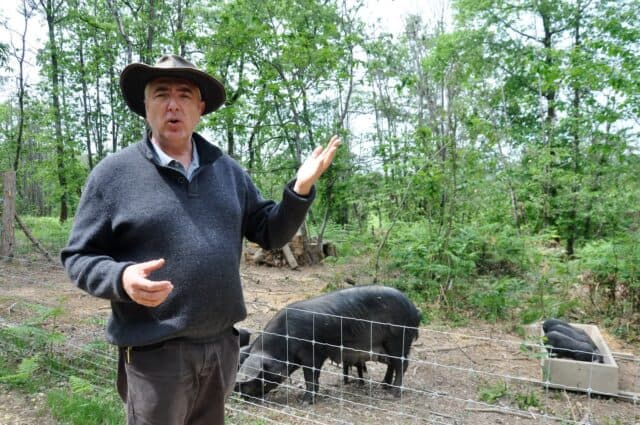 Avec son épouse Fabienne, il a trouvé son havre de paix, au cœur de la campagne périgourdine. Depuis 2016, il s’occupe à temps plein du domaine de La Valette, à Saint-Félix-de-Villadeix. Cette propriété de 80 ha, entourée de bâtiments, est apparue une évidence pour mener à bien son projet de vie. Arnaud Bourgeois a multiplié les investissements pour créer sa ferme idéale, à la fois lieu d’accueil pour les touristes en quête de sérénité et projet viable économiquement. « J’ai découvert avec passion le monde des races menacées. Mon choix a été de trouver le moyen de les valoriser tout en gagnant notre vie et en misant sur la qualité du produit, dans le respect du bien être animal. » Sa production de viande et de volailles transformée sur l’exploitation est commercialisé en vente directe auprès des particuliers et des restaurateurs.