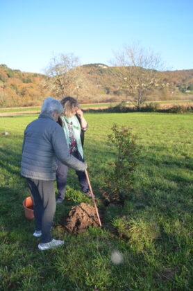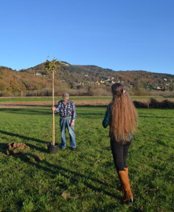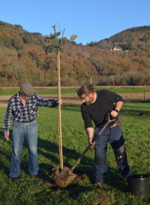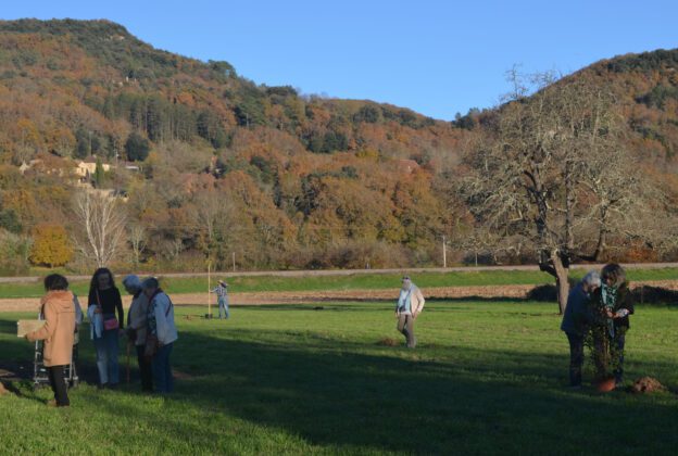 Le projet avance, avec des chantiers collectifs organisés les samedis à la ferme, réunissant amis et bénévoles dans une ambiance joyeuse. La première activité officielle s’est déroulée fin novembre, concrétisant un partenariat avec l’Ehpad du canton de Saint-Cyprien, à Castels, pour se retrouver autour des jardins de l’ancienne ferme des Cauffours, autrefois dédiée à la polyculture, notamment celle du tabac qui poussait dans cette vallée fertile. Une cérémonie de plantation d’arbres, une essence distincte pour chaque résident et chacun d’eux donnant son nom à cet arbre, s’est faite au grand soleil d’automne, un peu après la Sainte-Catherine.