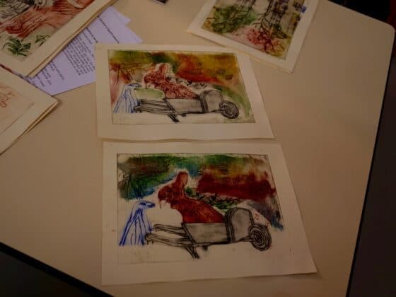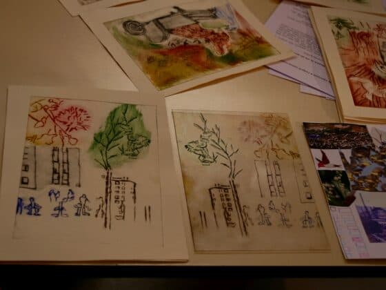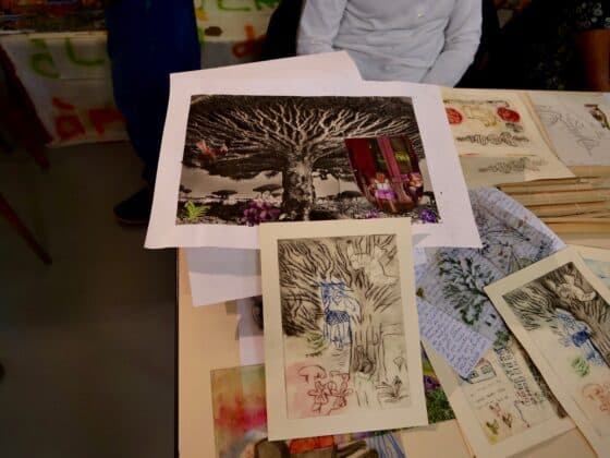 Au cours des ateliers organisés par la compagnie Rouletabille, stimulés par Ambre, ils se sont dépassés, ont vaincu leurs réticences, leurs convictions qu’ils n’y parviendraient pas, pour se faire confiance. Photos, dessins, collages, autant de supports lors d’ateliers gravure animés par Gérard Maxheim, pour encrer leurs créations. Chacun y est allé de son imaginaire, montrant son attachement à son lieu de vie mais également son envie d’en faire un lieu d’entraide, de solidarité. Une façon de montrer ainsi que la cohésion sociale n’est pas qu’un laïus technocratique, mais s’appuie sur des relations humaines où l’on est simplement bien ensemble, en mixant nos différences et nos spécificités pour le bien commun.