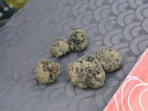 À défaut d’intelligence artificielle, Serge Sauve note avec soin les résultats de chaque arbre numéroté sur un cahier. Il en tire les conclusions avec son savoir-faire : « cette année, avec la sécheresse, j’ai dû arroser quatre fois. Ça m’a bien réussi, puisque ma récolte a été bien meilleure que d’autres». La chienne border collie Cali, en gambadant à travers la truffière, a trouvé quatre petits spécimens, récompensés par des petits bouts de fromage par son propriétaire. Avant de repartir, les visiteurs ont pu goûter du beurre de truffe sur une tranchette de pain avec une goutte de monbazillac. Robots et IA éventuels devront être programmés pour l’accueil à la périgordine.