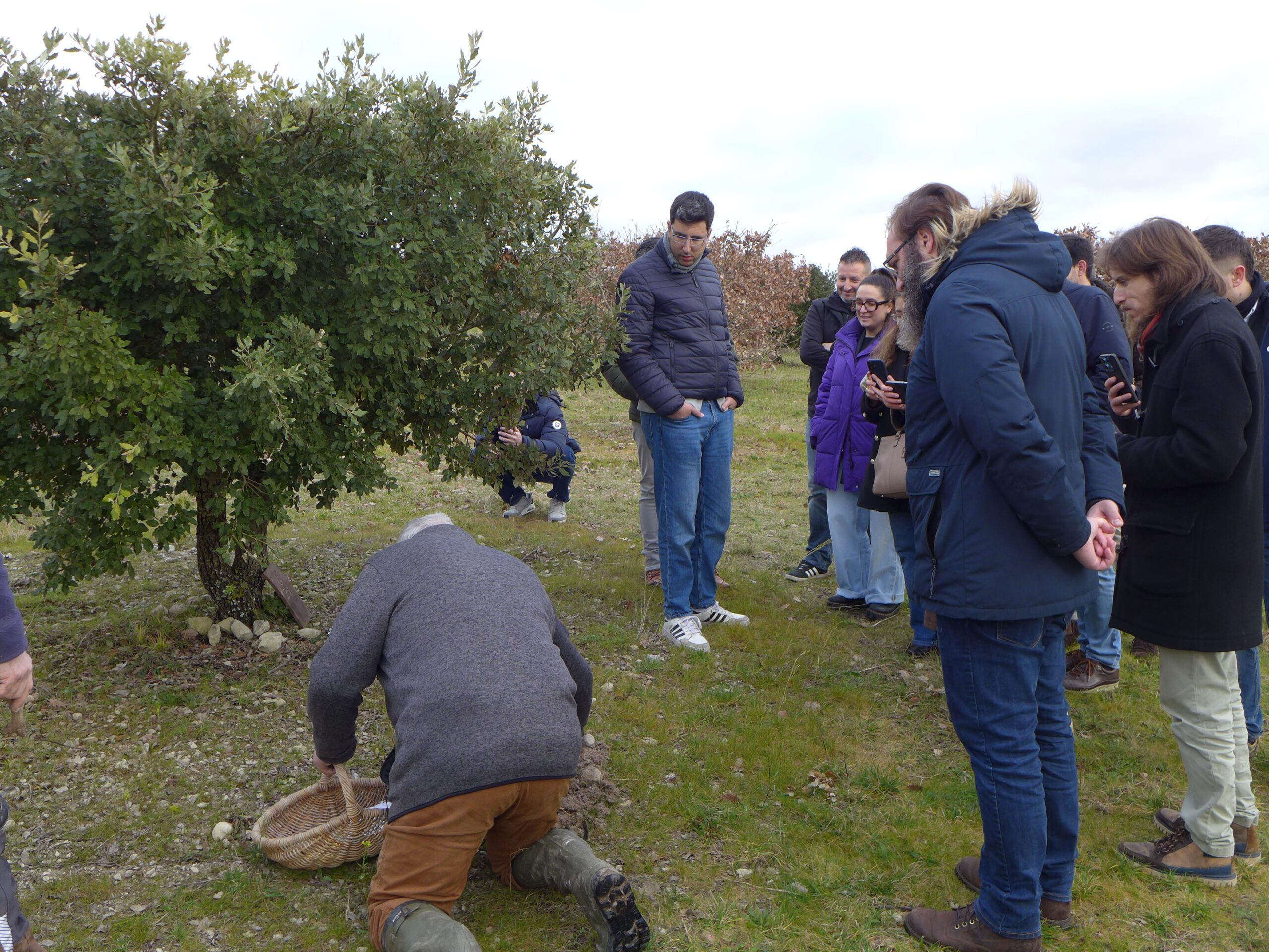 En circulant à travers les arbres à la recherche des dernières truffes de la saison, ils ont découvert les problématiques des producteurs : le travail des sols sans les tasser, la taille des arbres à deux reprises dans l’année et la question éternellement débattue de l’apport d’eau.