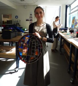 Aujourd’hui, Florine exerce un métier où la précision rencontre la créativité, un métier de plus en plus féminin, où la sensibilité devient une force. Et quand elle parle de son avenir, ses yeux brillent autant que les éclats de verre qu’elle assemble. Florine Orieux a façonné son savoir-faire au sein de la prestigieuse École nationale supérieure des arts appliqués et des métiers d’art (école publique) à Paris, dans le XVe arrondissement, où la tradition dialogue avec la création. Y entrer n’a pas été simple : une première tentative infructueuse, puis l’attente et l’espoir. La sélection est rude: près de 300 candidatures pour seulement sept places. Mais la persévérance finit par payer. Quand enfin la porte s’ouvre, c’est tout un monde qui s’offre à elle.