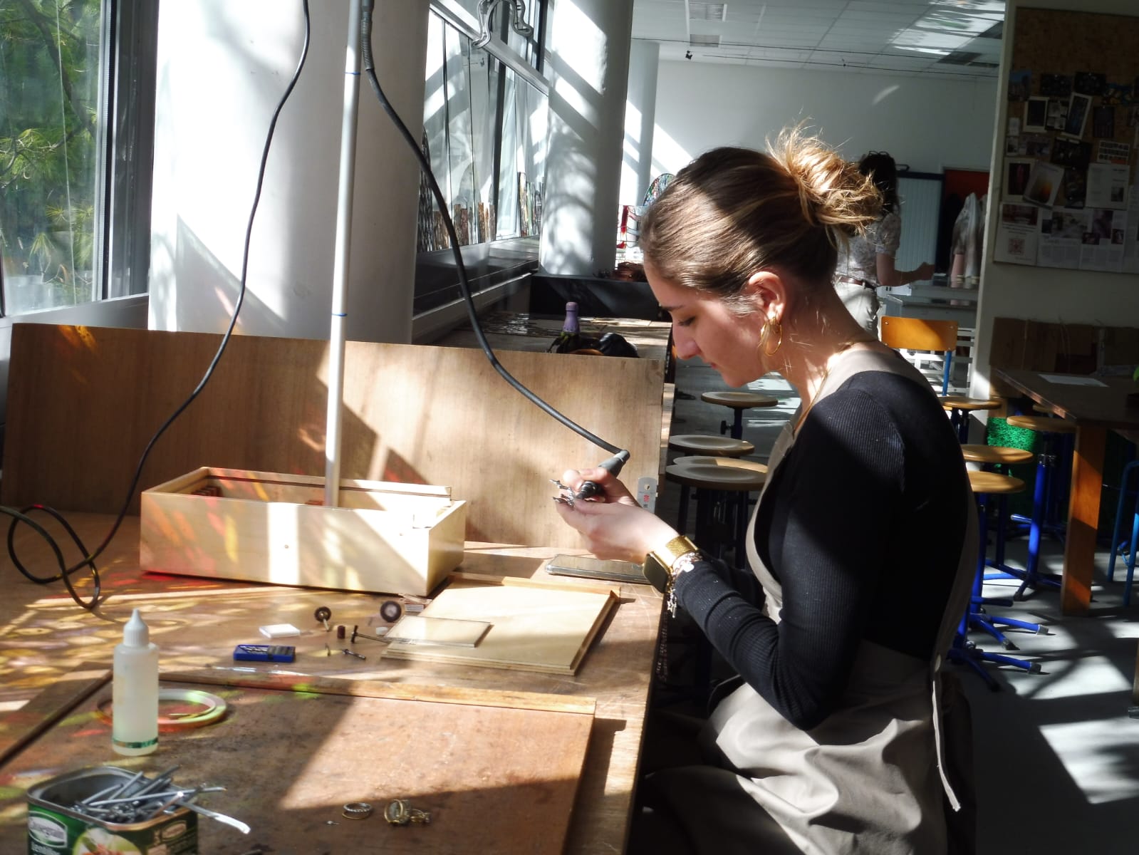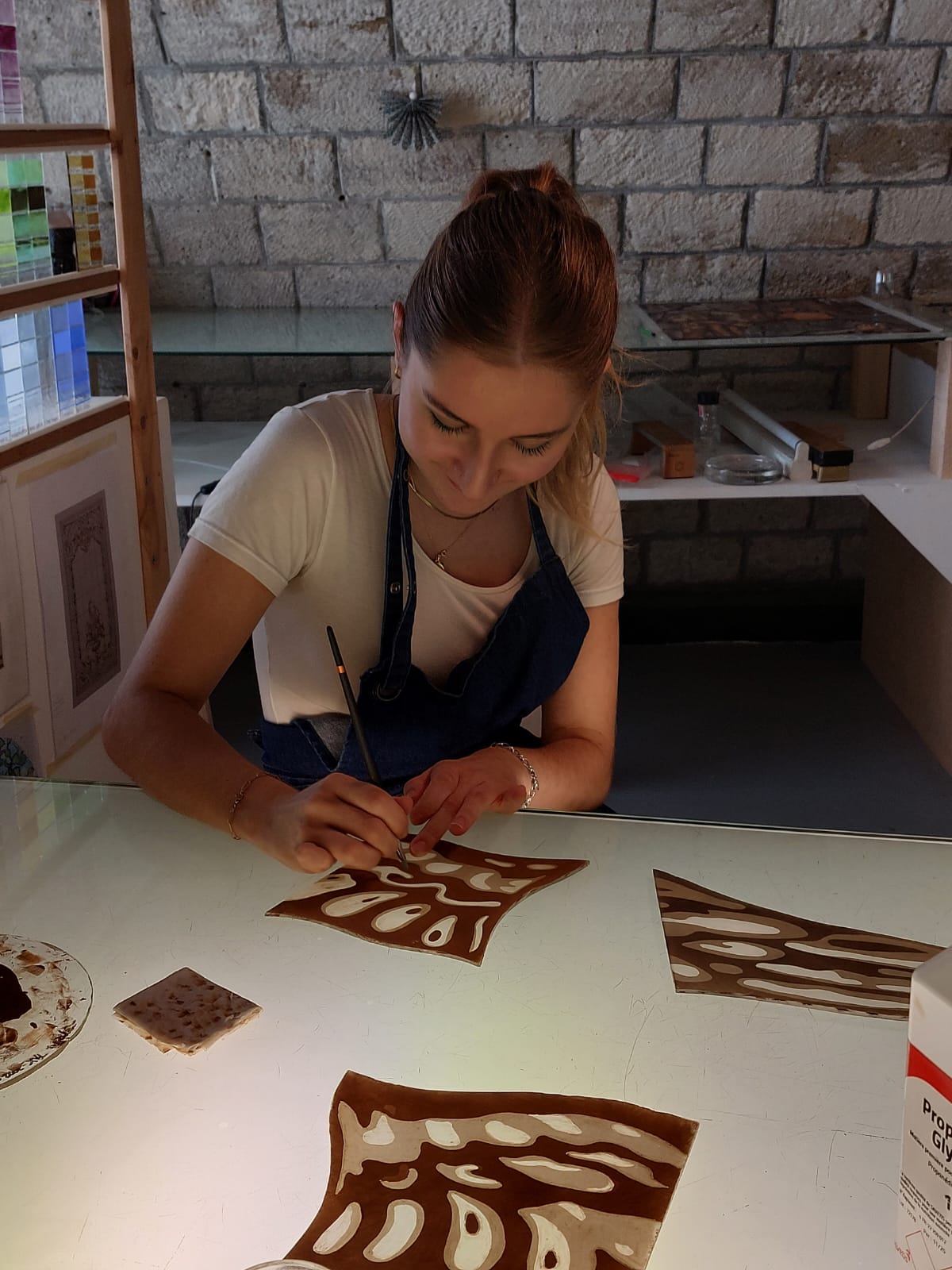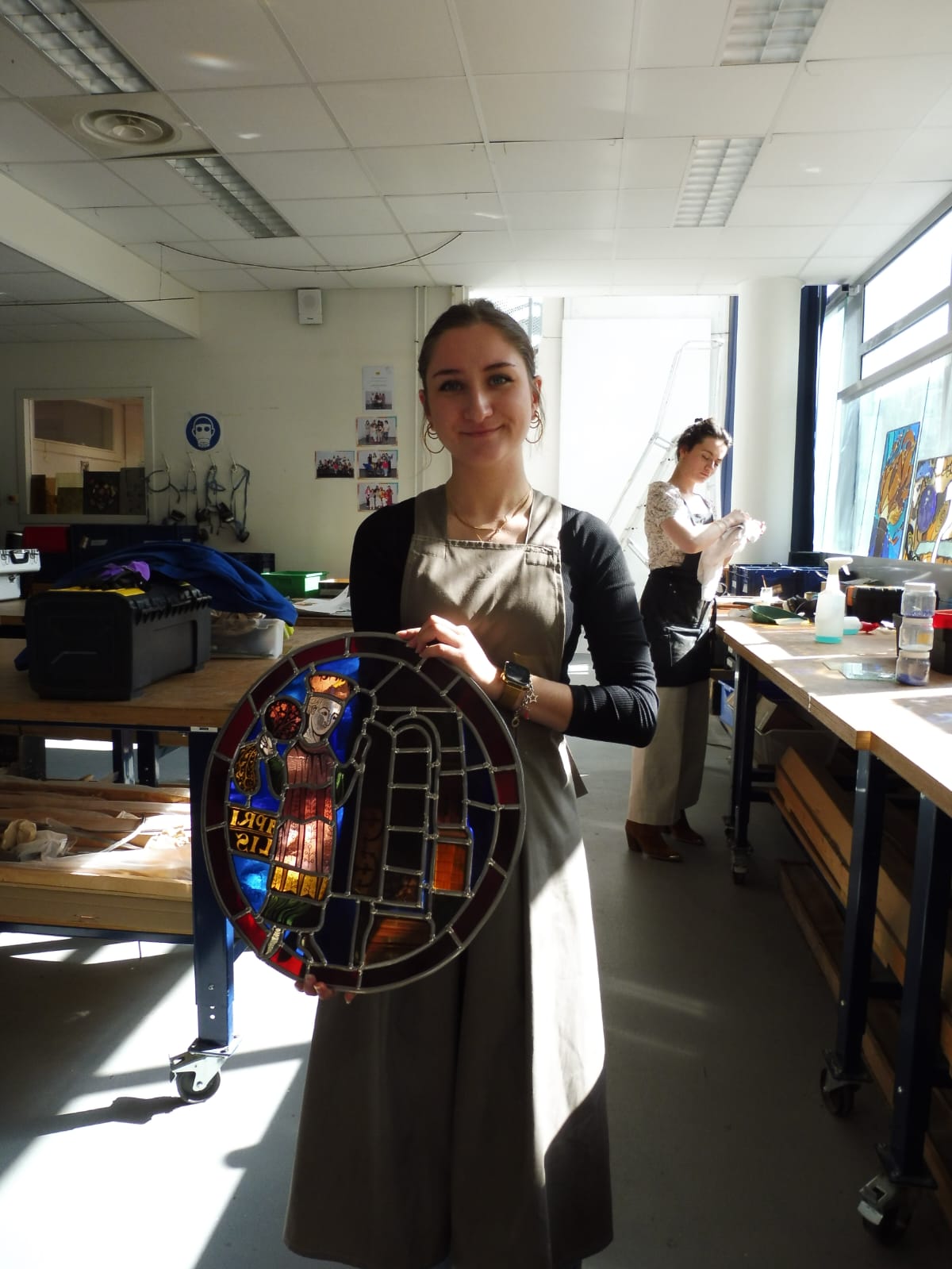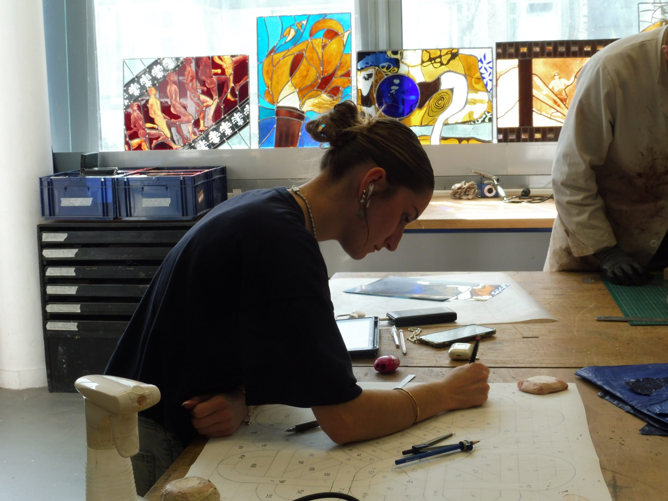 Aujourd’hui, Florine exerce un métier où la précision rencontre la créativité, un métier de plus en plus féminin, où la sensibilité devient une force. Et quand elle parle de son avenir, ses yeux brillent autant que les éclats de verre qu’elle assemble. Florine Orieux a façonné son savoir-faire au sein de la prestigieuse École nationale supérieure des arts appliqués et des métiers d’art (école publique) à Paris, dans le XVe arrondissement, où la tradition dialogue avec la création. Y entrer n’a pas été simple : une première tentative infructueuse, puis l’attente et l’espoir. La sélection est rude: près de 300 candidatures pour seulement sept places. Mais la persévérance finit par payer. Quand enfin la porte s’ouvre, c’est tout un monde qui s’offre à elle.