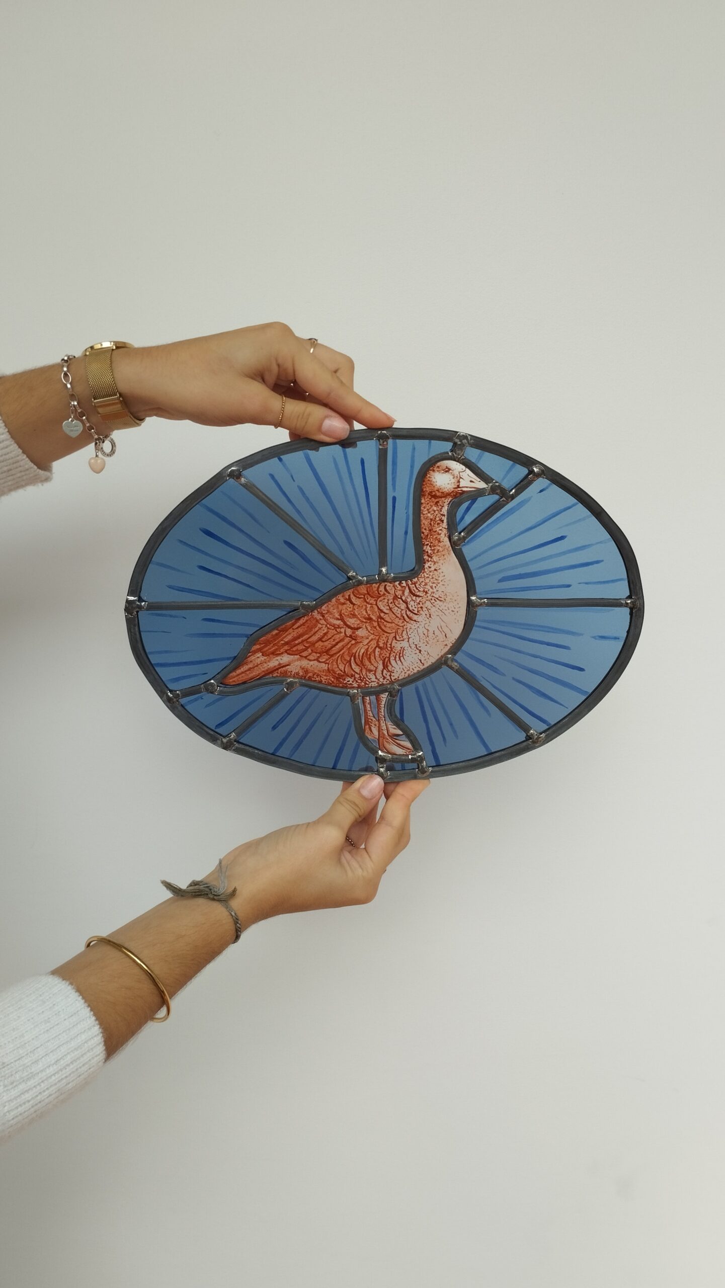 Là, au détour d’un atelier, elle rencontre le vitrail et c’est le coup de foudre. Une rencontre décisive est venue amplifier cette vocation naissante : Didier, son professeur au sein de l’association, c’est lui qui, avec patience et bienveillance, a su réveiller en elle ce lien profond avec l’art, cette émotion singulière qui naît quand la matière se met à vivre entre les mains. « Il m’a transmis bien plus qu’un savoir-faire, raconte-t-elle, il m’a donné le goût du geste juste, de la lumière, du détail. » Le vitrail, cet art subtil qui marie le verre, le plomb, la couleur et la lumière, devient sa révélation. « J’ai su tout de suite que c’était ça », confie-t-elle. Dans ses mains, la transparence du verre prend vie, se transforme en poésie lumineuse.