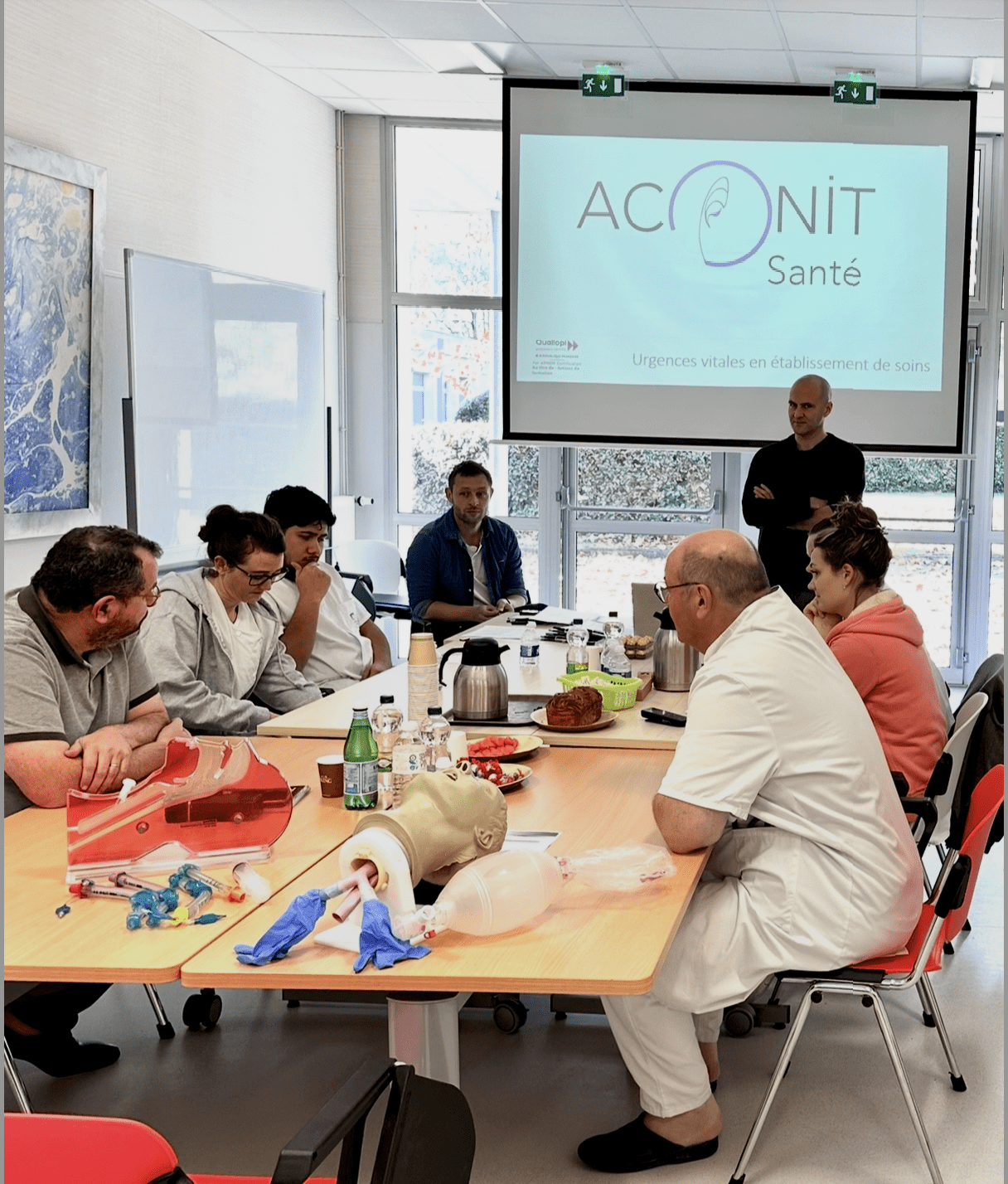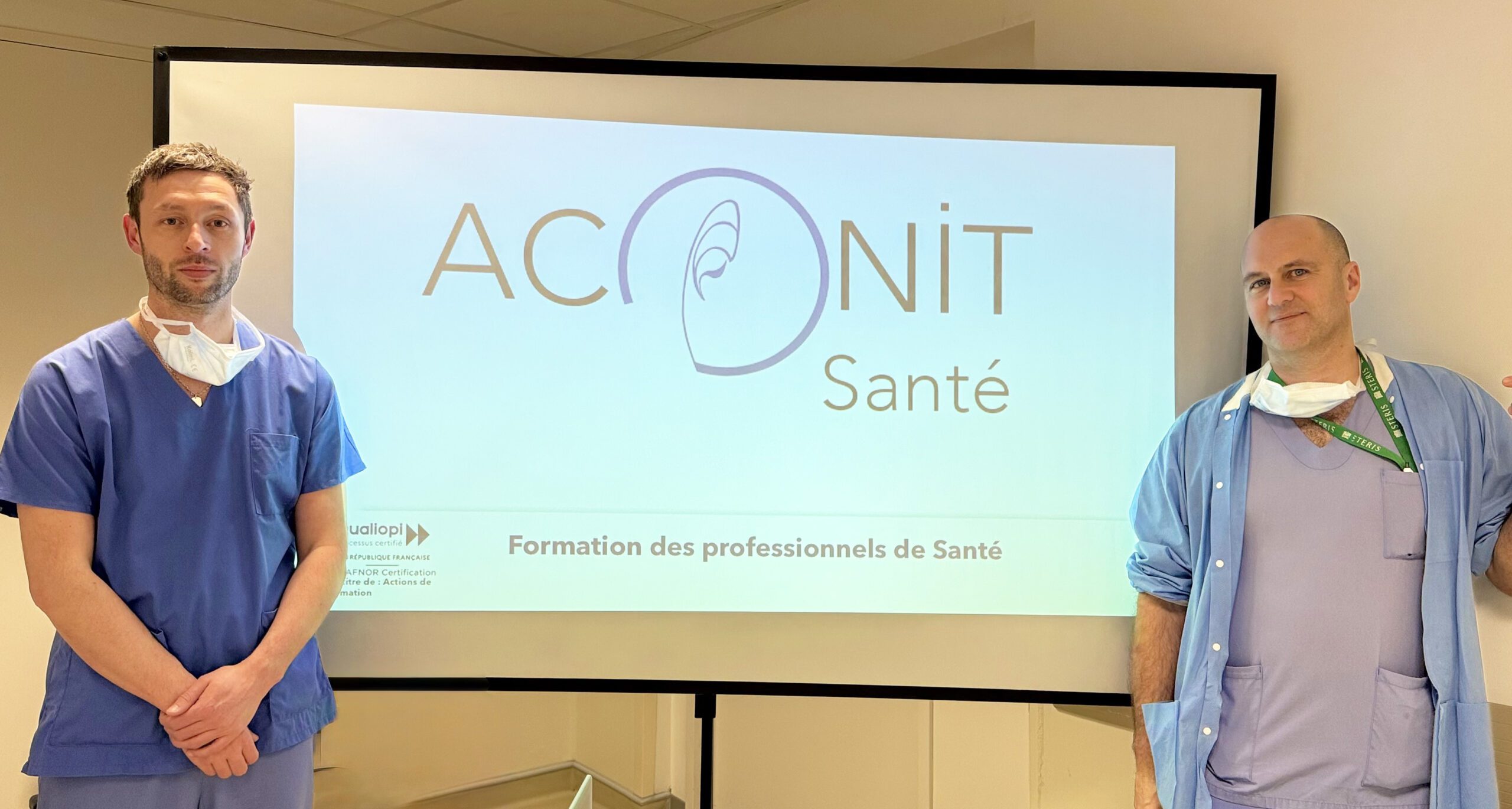 Eux deux avaient repris des études pendant deux ans pour obtenir la spécialité d’infirmier anesthésiste, ils croient aux vertus de la formation et pensent que « c’est pour ça qu’on est encore à fond dans notre travail ». Pour partager le contenu des formations auxquelles ils pensent, ils imaginent d’abord une possibilité au sein de la clinique, « entre nous, en interne », mais c’était compliqué de s’ajuster dans les plans de formation établis par l’établissement. Alors pourquoi ne pas créer un outil de formation ? « On s’est renseigné, on a découvert le nécessaire système d’accréditation Qualiopi et on s’est lancé malgré l’ampleur de la tâche, en plus de notre travail. On a mis un an à préparer les process de formation, la première était destinée aux infirmières en salle de réveil », le passage obligé après toute intervention.