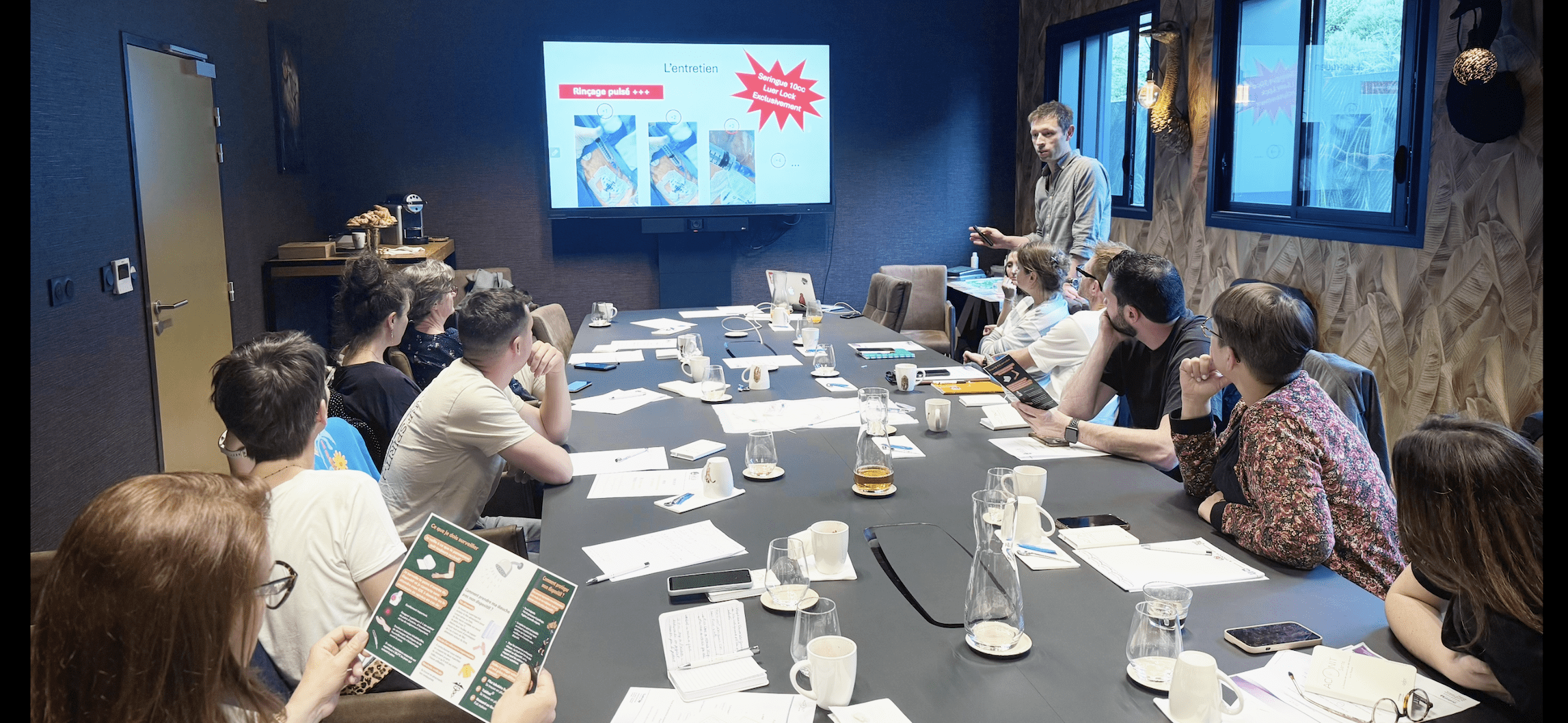 Les professionnels ne sont pas toujours à l’aise avec ce soin que le formateur aide à dédramatiser. « Quand il y a un début de dysfonctionnement, on est prévenus tout de suite, donc on réduit les complications : c’est essentiel pour celui qui subit, car pour des patients en chimiothérapie cela peut aboutir à des retards de traitement et ce n’est jamais bien de décaler. »