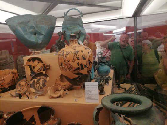 Christian Chevillot, docteur en archéologie, est intarissable sur les relations entre Gaulois et Étrusques. Son dernier voyage a amené des amateurs d’archéologie et de découvertes sur quelques-uns des sites majeurs. Bien sûr, il y avait l’incontournable cité de Tarquinia avec sa nécropole de tombes souterraines comportant les plus belles tombes peintes étrusques. Dans son musée archéologique, se découvrent de fabuleuses collections d’objets trouvés dans les tombes fouillées depuis des siècles. Énormément de vases grecs rappellent des origines et des liens très forts entre l’Étrurie et la Grèce, depuis le IXe siècle avant notre ère. Ils font encore partie des mystères de cette civilisation très différente de celle des Romains qui les ont remplacés.