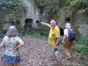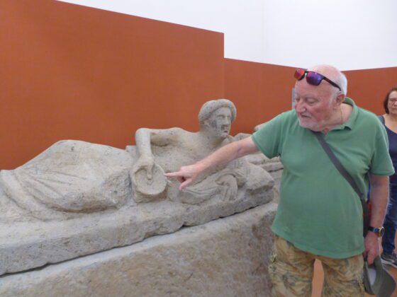 Les participants au voyage de Christian Chevillot ont eu la surprise de croiser sur deux sites un autre Périgourdin connu pour sa passion de l’archéologie et qui a longtemps vécu en Italie : François Michel. Docteur en archéologie et chercheur associé à Ausonius, à l’université de Bordeaux, il est guide conférencier spécialisé sur l’Italie antique.