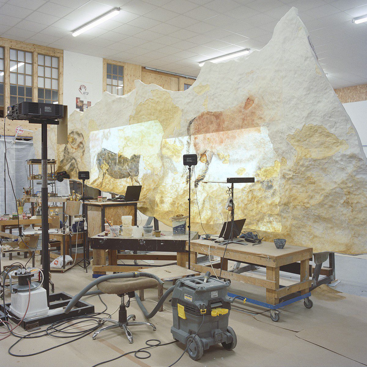 Anne Leroy, venue de région parisienne, était invitée par le pôle d’interprétation de la Préhistoire pour raconter en images la vallée de la Vézère. Elle a documenté la grotte de Bernifal, comme l’atelier des fac-similés du Périgord ou des réserves archéologiques au château de Campagne.