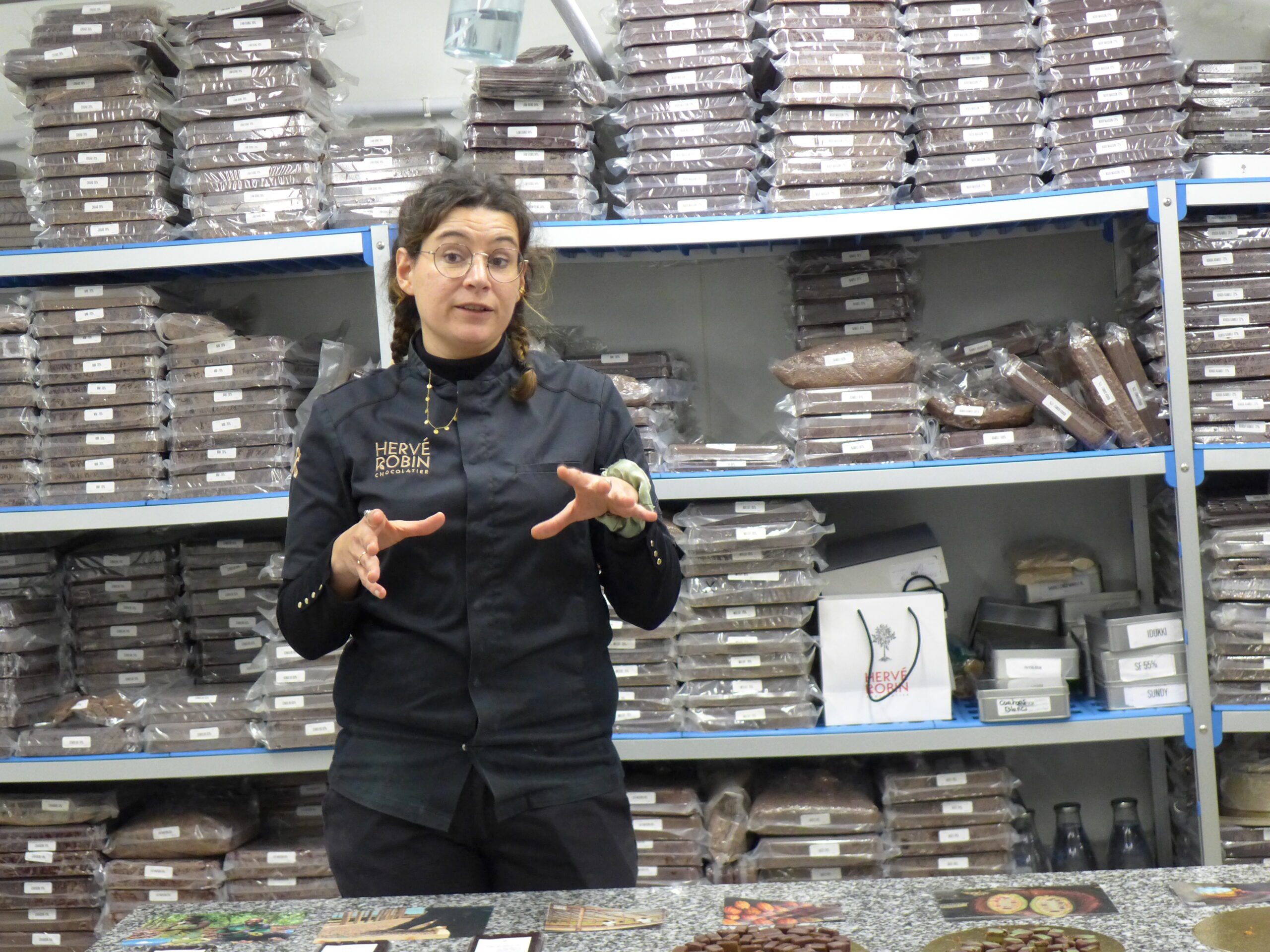Hervé Robin, originaire de la Meuse, est passé par de nombreuses grandes entreprises spécialisées comme la Maison du chocolat à Paris, avant de fonder sa chocolaterie en Dordogne. Il adore expliquer la provenance des produits qui se marient si bien avec le chocolat, comme les noisettes du Lot-et- Garonne, les amandes de la Drôme, les noix du Périgord évidemment ou les fraises du pays Vernois. Les vrais amateurs le préfèrent nature, pour déguster de petits morceaux de tablettes en profitant des arômes de grands crus de cacao. Ils font voyager dans le monde entier : Vénézuela, Guatemala, Pérou, Bélize, Madagascar, Tanzanie, Vietnam, Inde, Philippines…