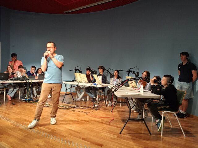 Lundi 26 mai, l’amphithéâtre Jean Moulin de la médiathèque de Périgueux s’est transformé en véritable studio radio pour permettre l’enregistrement et la diffusion en direct sur le web d’une émission. L’originalité du projet, c’est qu’il réunit des élèves de CM1 CM2 de l’école André Boissière de Périgueux, des collégiens du club radio du collège Leroi-Gourhan du Bugue et la classe de Seconde 6 du lycée Bertran-de-Born.