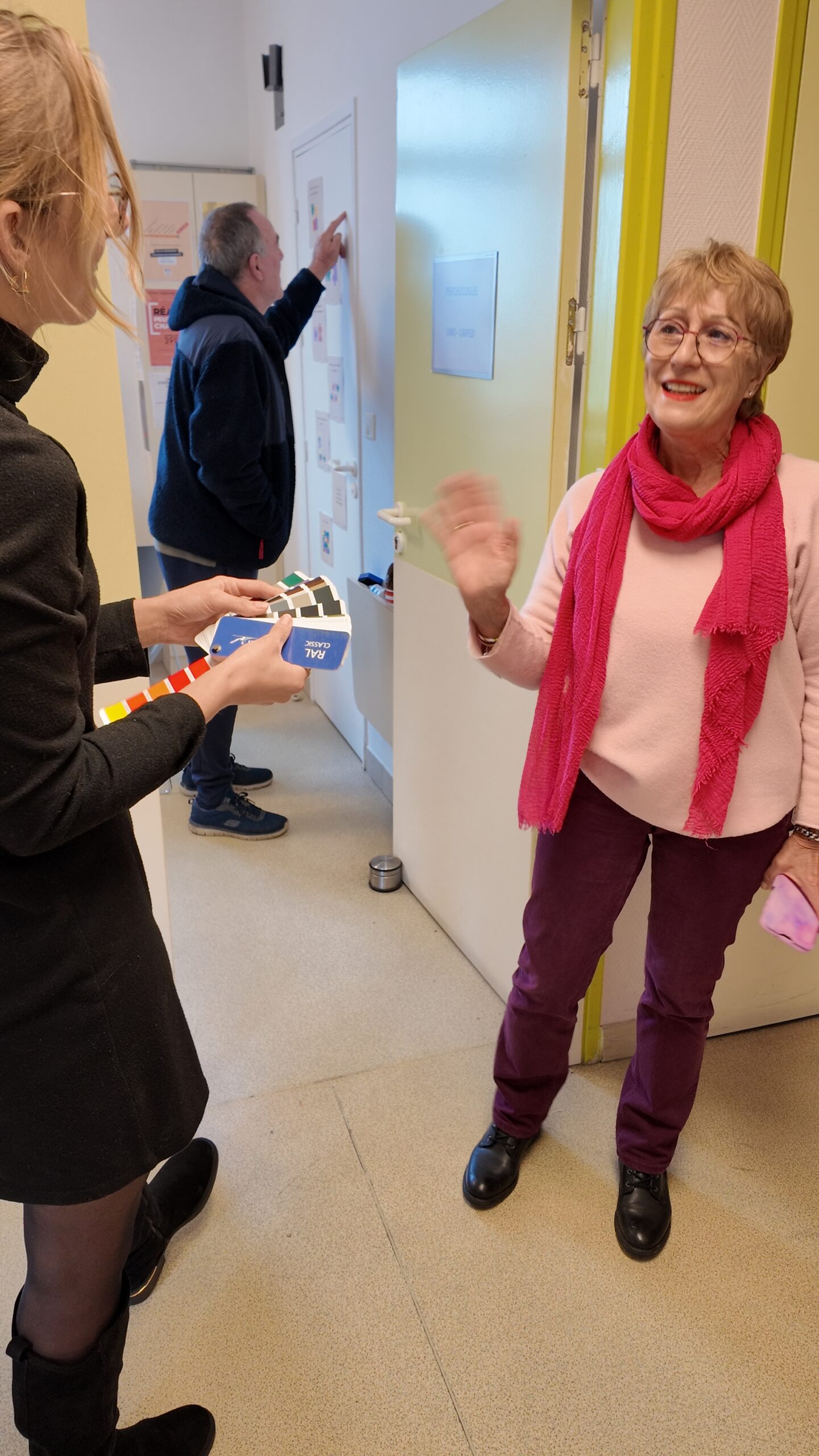 Il flotte une atmosphère presque légère dans les couloirs de l’UAPED, ce mardi 17 février. Une légèreté qui contraste avec les situations traitées ici. Camille, infirmière, et Jessica, psychologue, examinent des nuanciers. À leurs côtés, Maxence Mister, représentant de PST Peinture. On compare, on hésite, on imagine. « On part sur du rose fluo ? » lance Camille, malicieuse. Le Dr Patrick Hilaire sourit : « Tout sera mieux que ça. »