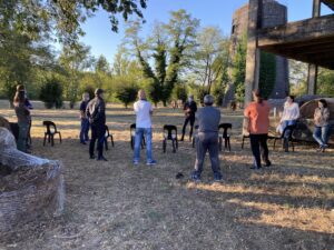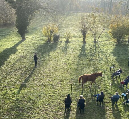 L’activité de médiation équine, construite avec les outils de l’éthologie, s’est mise en place en septembre 2020, à raison d’une séance de trois heures chaque lundi jusqu’à fin novembre. Huit détenus répartis en deux groupes de quatre étaient accompagnés par quatre chevaux, deux monitrices d’équitation Cécile Mouillon et Isabelle Camus-Didier, trois surveillants, et trois soignants.