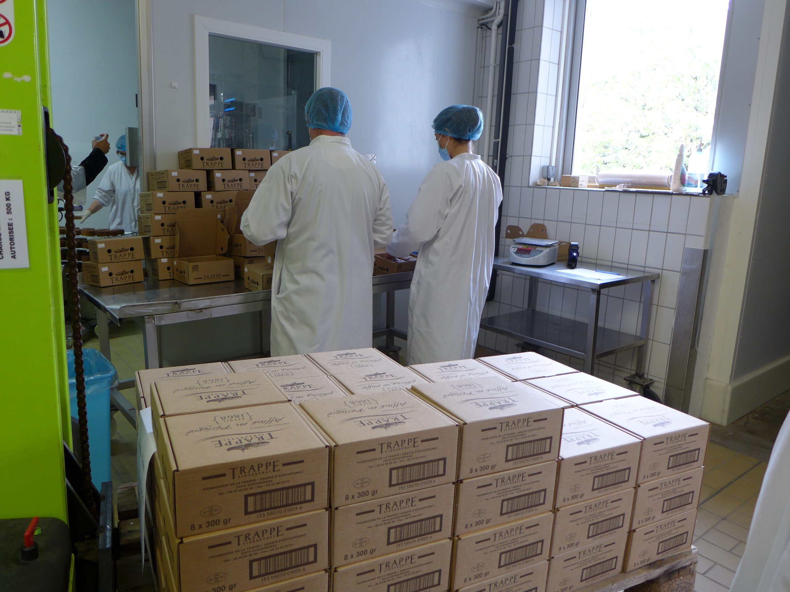 En Dordogne, les fromages bruts arrivent juste après fabrication pour y être préparés selon la recette des sœurs. Ils sont lavés, enduits de vin de noix et de ferments, avant d’être affinés en cave où ils restent plusieurs semaines. Ils sont aux petits soins des sœurs et des salariés spécialisés qui les retournent régulièrement et surveillent leur évolution liée à l’hygrométrie et à la température. 130 tonnes représentant des milliers de fromages sortent chaque année des caves situées dans un bâtiment à l’écart du monastère. Le Trappe à la noix représente aujourd’hui l’essentiel des fabrications, le Trappe nature qui vient de la recette du Port Salut n’étant plus acheté que par des amateurs. À Échourgnac un fromage de brebis fabriqué par une fromagerie des Pyrénées est affiné durant près de trois mois. Ces produits sont essentiellement vendus en France avec quelques exportations en Belgique et en Allemagne. Ils ont aussi une boutique en ligne.