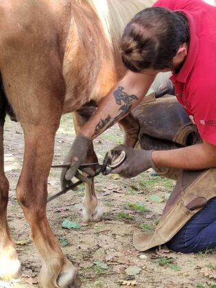 Propriétaire de cinq chevaux, le jeune homme connaît bien le monde équestre. Il envisage après avoir pratiqué un peu, de faire une formation de maréchal-ferrant. Durant un an, il suit la formation à Mirande au CFPPA. Deux semaines de stage en entreprise alternent avec les deux autres en centre de formation. Une année complexe financièrement. Outre les nombreux trajets, les frais inhérents à la formation, le fait « d’être à cheval » sur deux régions (l’Occitanie et la Nouvelle Aquitaine) ne lui donne droit à aucune aide. La rencontre en amont avec Clotilde Manière à l’Adie lui ouvre cependant des perspectives encourageantes pour la création de son activité.