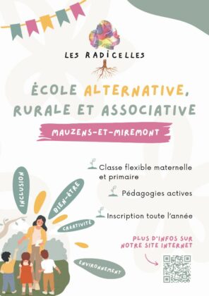École privée hors contrat, Les Radicelles est orientée vers l’environnement rural avec pour objectif la connaissance du milieu, du patrimoine, de l’histoire et leur utilisation en créant un lien socio-culturel, intergénérationnel, une dynamique positive et vertueuse.