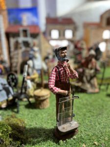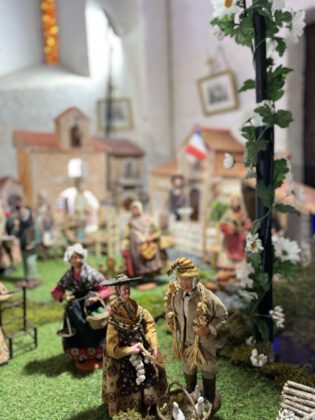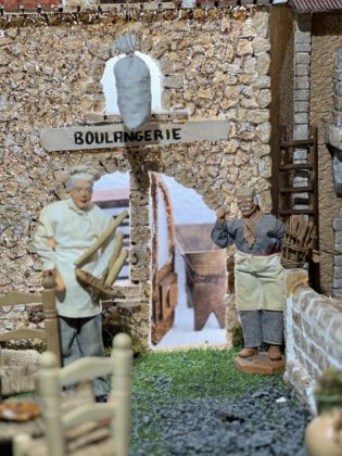 Scènes rurales, gestes simples, souvenirs d’un quotidien disparu : le passé reprend corps, délicatement, dans l’écrin de pierre, offrant aux regards d’aujourd’hui un voyage sensible entre mémoire collective et ferveur populaire, l’œuvre de Jean-Claude Garnier. Cinquante métiers sont représentés, portés par soixante santons de grande taille. Une fresque populaire, vivante, où chaque geste raconte un savoir-faire, chaque silhouette une mémoire. Mais avant tout, cette crèche est une histoire de gosse. « Je revois mon enfance », confie Jean-Claude Garnier. C’est lui qui a imaginé et construit cette crèche de style provençal. Il se souvient de sa grand-mère lavandière, du baquet où elle lavait le linge, de lui et de ses cousins jouant autour, éclaboussés de rires. Tout ici murmure la ferme de son grand-père, les odeurs, les gestes d’alors.