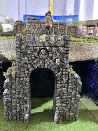Jean-Claude a débuté son ouvrage le 4 janvier. Jour et nuit, avec patience. Imagination et gestes méticuleux pour aller au bout d’un rêve. Très peu d’outils : un pistolet à colle, un cutter, un fer à souder. Le plus long fut la construction du rocher et du château féodal. Pour leur donner une apparence réelle, il a fallu travailler les couleurs par étapes : d’abord le noir, puis le marron, le beige et le beige clair, jusqu’au blanc pur. C’est ce jeu de six teintes qui donne toute la profondeur au regard.