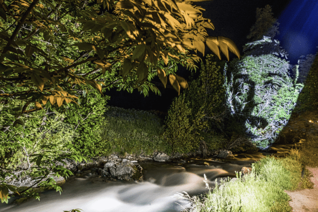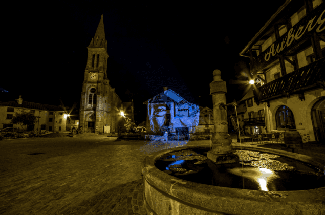 Le portraitiste marseillais, précurseur du Street Art 2.0., joue de douceur dans la forme pour donner toute sa puissance au message. Après avoir investi les villes, l’artiste a orienté ses projections lumineuses éphémères vers la nature en s’engageant, en 2016, pour la forêt primaire amazonienne, puis s’est exprimé à Bastia ou Val d’Isère, avant d’investir cet été le massif des Écrins en s’intéressant à des lieux reculés et à ceux qui y vivent « qui sont l’âme de ces villages, loin parfois des plus grandes stations ou super pôles touristiques ».