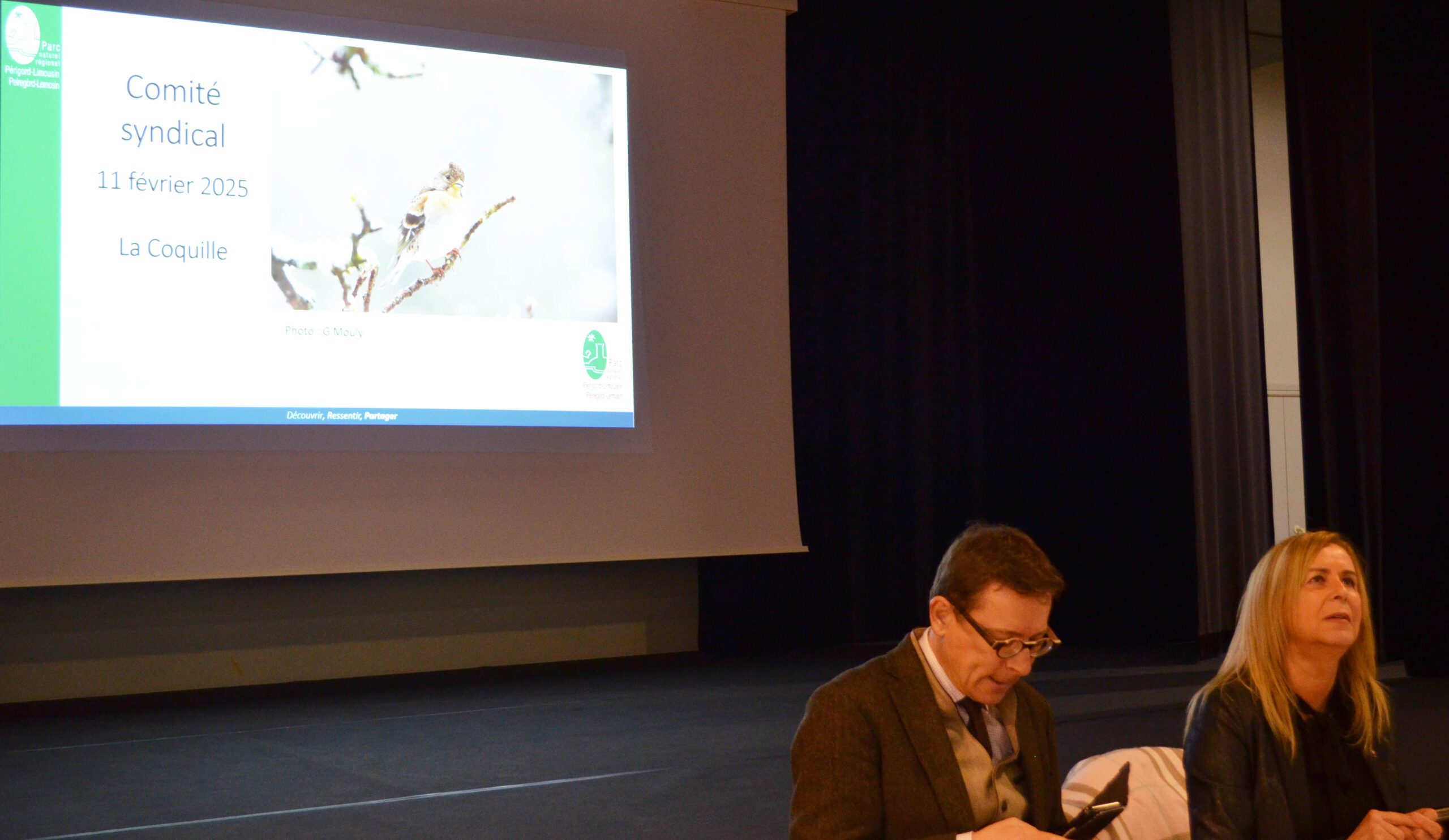 Mercredi 11 février, 18h, La Coquille, la tempête Nils s’apprête à coucher les arbres sur sa route et grossir les rivières, mais les rangs sont à peine clairsemés à l’espace culturel pour valider – à l’unanimité — l’avant-projet de charte* du Parc naturel Périgord-Limousin, la troisième depuis sa création, pour la période 2026-2041. Les élus délégués du comité syndical (75 communes dont 43 en Dordogne, 7 intercommunalités, Départements Dordogne et Haute-Vienne, Région Nouvelle-Aquitaine) ont fait un tour d’horizon des enjeux stratégiques et des orientations collectives pour continuer ensemble — et même davantage, avec 15 candidatures pour un périmètre étendu, notamment vers la Charente — et renouveler la labellisation qui arrive à échéance au mois d’août (le parc n’aura alors plus d’existence légale pour produire des avis, mais continuera bien sûr à fonctionner et à rester visible lors de cette période de transition, avec ses chargés de mission, et l’attribution du poste vacant dédié à la forêt).