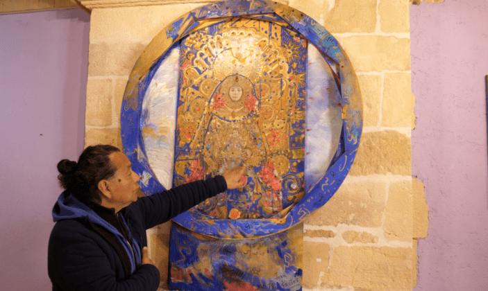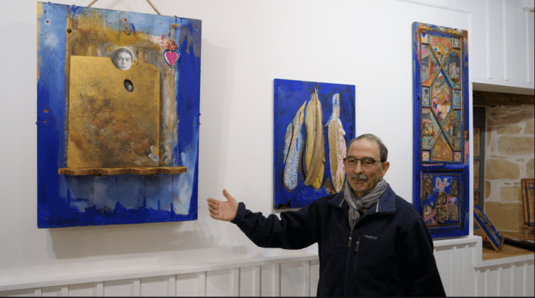 Ce qui saisit lorsque l’on découvre les tableaux de Juan, ce sont les couleurs éclatantes, lumineuses, éclairantes, révélant le sublime bleu de la casa Azul. Conjuguant dans une originalité et une créativité toute personnelle peinture, découpages et collages, l’artiste nous transporte dans son univers fantastique, où il n’y a pas de guerre, pas de pandémie, seulement sa sensibilité empreinte de spiritualité. Avec un message universel de tolérance dans un monde qui nous échappe.