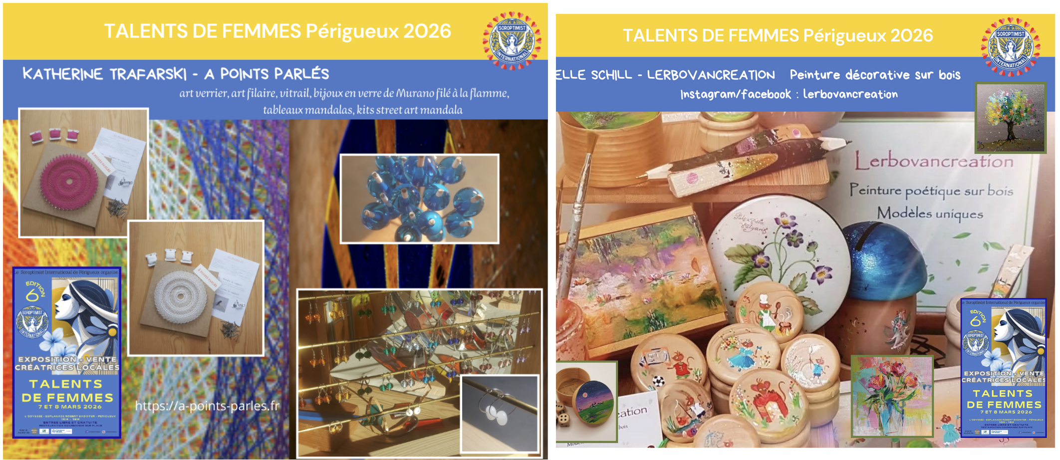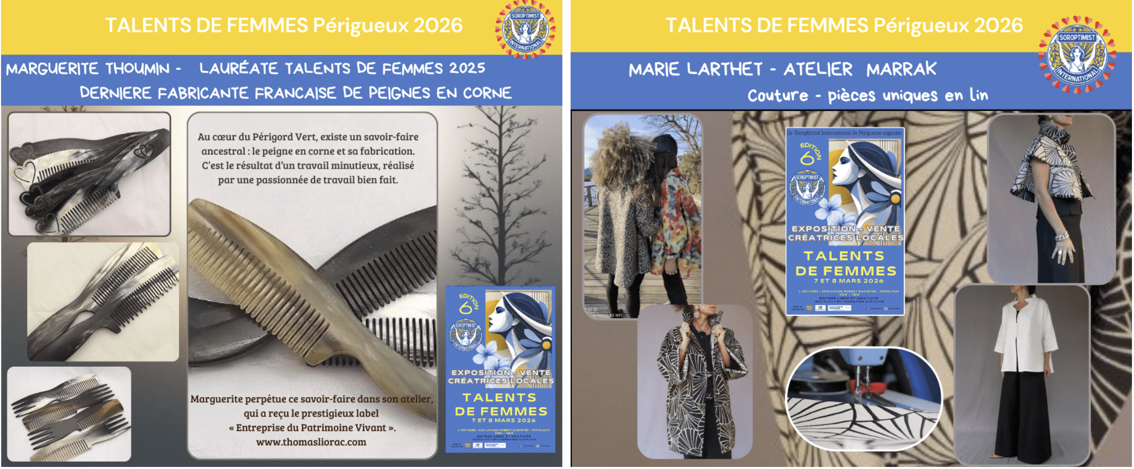 Ce salon s’inscrit dans le cadre plus général de l’Union Française du Soroptimist, qui organise un prix national depuis 2017 pour valoriser la créativité des femmes et leur désir d’entreprendre. Durant le salon, le Club de Périgueux sélectionnera une artisane qu’il présentera à ce défi.