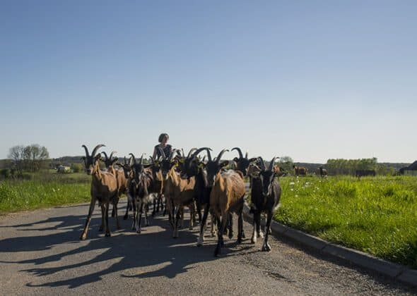 La quête de l’humain dans son environnement l’invite aujourd’hui à témoigner d’une ruralité en pleine mutation. En suspension pendant deux mois en Périgord, il s’est interrogé sur un cap à passer, la possibilité de décentrer un travail très parisien, petit à petit, vers cet ailleurs encore un peu loin de son centre de gravité. « Question de temps, et de distance. » La possibilité professionnelle qu’il avait de se déplacer durant ces deux mois lui a permis de rencontrer Marie-Rose Ampoulange (lien vers article Moulin de l’Evêque) lors de la remise en fonction du Moulin de l’Evêque, à Vézac, au moment où l’on parlait de pénurie de farine. « C’est aussi à Meyrals, un village très dynamique, que cette envie s’est consolidée. Nous nous approvisionnons en fromages de chèvre et yaourts chez Jennifer Kendall, qui a invité d’autres producteurs les vendredis, durant le confinement. Une vigneronne, qui venait en cliente, s’est ajoutée. Et il y avait aussi la farine du moulin de Vézac, un charcutier qui élève des porcs en plein air, une maraîchère… tous en production bio ou raisonnée. C’est ainsi que j’ai eu envie de faire leurs portraits. »