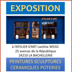 Les deux artistes périgourdins sont loin d’être des inconnus dans cette commune où la fille d’André, elle-même artiste, a élu domicile et atelier un peu plus haut dans la rue : Laetitia Weiss présente derrière sa devanture d’un bleu éclatant une exposition de peintures, sculptures, céramiques et poteries (jusqu’au 3 septembre également, week-ends et jours fériés, de 15 à 19h ou sur rendez-vous).