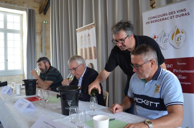Une soixantaine de dégustateurs de la première heure, répartis en 19 jurys, ont déjà passé la matinée à affiner les choix parmi 243 échantillons anonymisés. Ils ont attribué 81 médailles dont 43 d’or, 33 d’argent et 5 de bronze, et retenu le meilleur de la sélection d’or : 16 cuvées (deux bergerac, un côtes de duras, un montravel et un IGP Périgord en blancs secs ; un bergerac et un IGP Périgord en rosé ; un bergerac 2023 et un 2022, un côte de duras, un côtes de bergerac 2022, un montravel 2022, un pécharmant 2022 pour les rouges ; un rosette, un côtes de bergerac, un monbazillac 2022 pour les moelleux et liquoreux) destinées au super jury, qui prend place ce 7 juin aux 12 coups de midi à l’église Saint-Jacques.