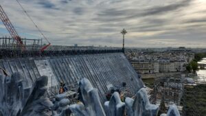 Le chantier de reconstruction a permis de tout refaire, au-delà de la sollicitation d’origine. Deux pointes sur les deux tours, une sur la flèche, une au bout de chaque transept, une sur la croix du chevet : c’est la couronne invisible posée sur la cathédrale pour la protéger des caprices du ciel. Le Périgourdin a œuvré dans les règles de l’art en se glissant dans l’impressionnant ballet de professionnels de tous horizons coordonné avec précision sur ce chantier historique, ce qui a forcément compliqué sa partition solo. Il salue « une organisation exemplaire, un calendrier tenu » lors de ses présences en pointillés, qui représentent un total d’un mois et demi de travail. « Il faut anticiper, ne rien oublier dans le fourgon-atelier garé bien loin de là, dont je ne sortais qu’une caisse pour la semaine. L’accès au chantier était sécurisé par badge, avec un passage en sas pour éviter la contamination au plomb.» Un contexte spectaculaire, même pour celui qui est passé par d’autres interventions hors-normes : Anthony Dupuy a déjà œuvré sur la protection totale du Panthéon, effectué sept interventions au Louvre, et sur les cathédrales de Bordeaux, Limoges, Angoulême, sans oublier des châteaux du Périgord et d’ailleurs.