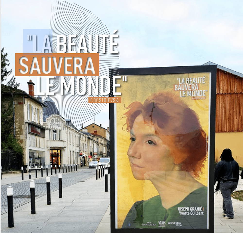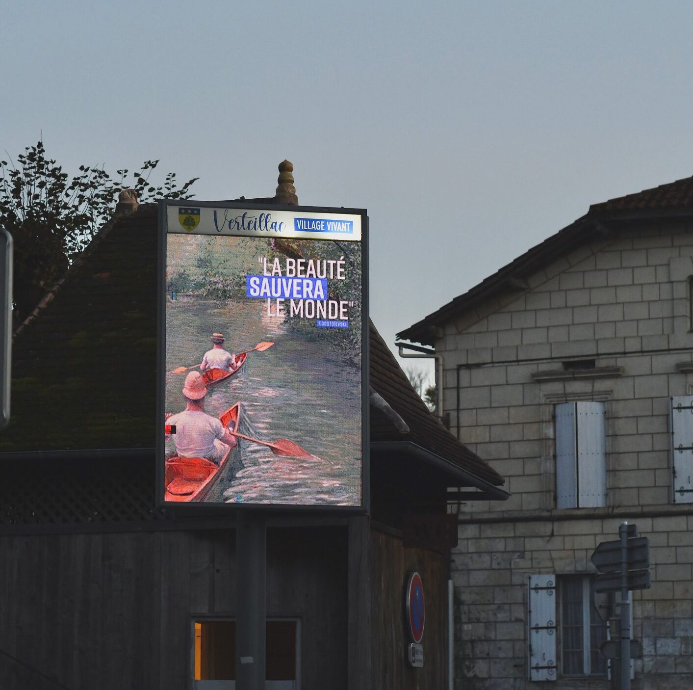 La Beauté sauvera le monde (Dostoïevski)… Cette opération nationale passe par la Dordogne grâce à la mairie de Verteillac, entrée dans la ronde des 88 villes et villages français qui suivent la commune de Saint-Dizier, laquelle a ouvert la voie en 2021, sur une belle idée : remplacer les affiches publicitaires par des œuvres d’art pour créer d’éphémères galeries à ciel ouverts dont les habitants, passants et visiteurs peuvent profiter au détour d’une rue.