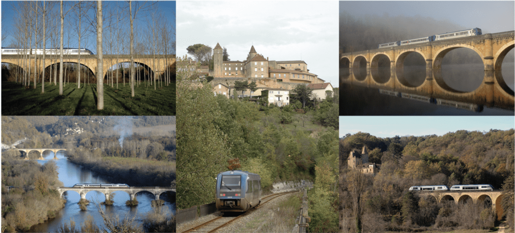 À l’invitation de l’office intercommunal de tourisme du Grand Périgueux, Bruno Marty présente jusqu’au 6 novembre une exposition des photos réalisées par tous temps et sous les meilleurs angles pour valoriser les ouvrages d’art sur les deux lignes TER qui traversent le département, « la radiale allant d’Agen à Périgueux et la transversale menant de Sarlat à Bordeaux. » Le reportage opportunément exposé à l’intérieur de la voiture de voyageurs Ocem de 1929 jouxtant le Fanal, à Niversac, est le fruit de 5 000 km parcourus depuis 2009 dans un rayon de 60 km autour de Sagelat. « J’avais pour principale contrainte les heures de passage : mieux vaut être précis pour ne pas rater son train ! L’autre idée était de réunir sur une même vue un site naturel ou patrimonial et un TER de passage sur un ouvrage d’art. »
